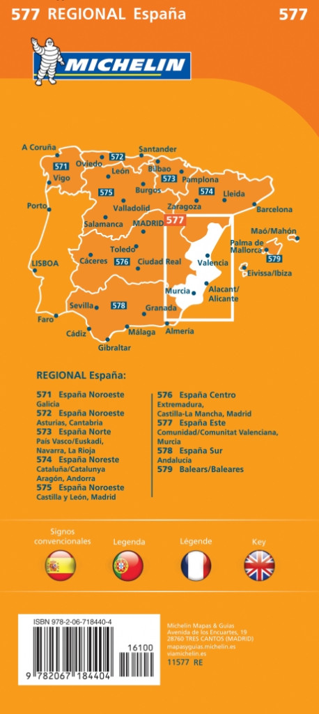 Spanyolország (kelet) régiótérkép – Valenciana, Murcia (577) / Michelin (2024)