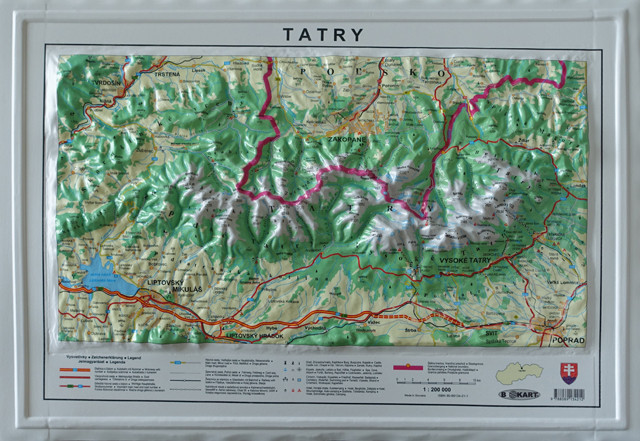 Ez a térkép a Tátra 3D-s térképe, így a néző azonnal észreveszi a Tátrát.