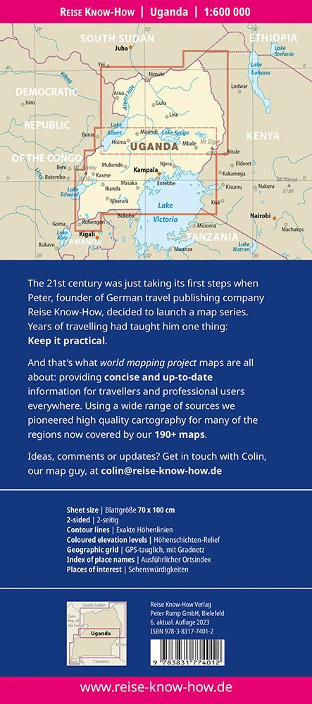 Szakadásálló és 100%-ban vízálló Uganda térkép a World Mapping Project sorozatból.