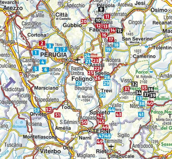 Umbria tartomány Olaszországban egészen más, mint a szomszédos Toszkána, és más is akar lenni. A történelmi nyomok olyan erősen hagyták rajta a bélyegét, hogy szinte érezni lehet a lehelletét. A túrakalauz a történelmi, kulturális és természeti szépségek között kalauzol, több hegycsúcsot is sorra vesz, ahonnan csodálatos panoráma tárul a vándorok szeme elé.