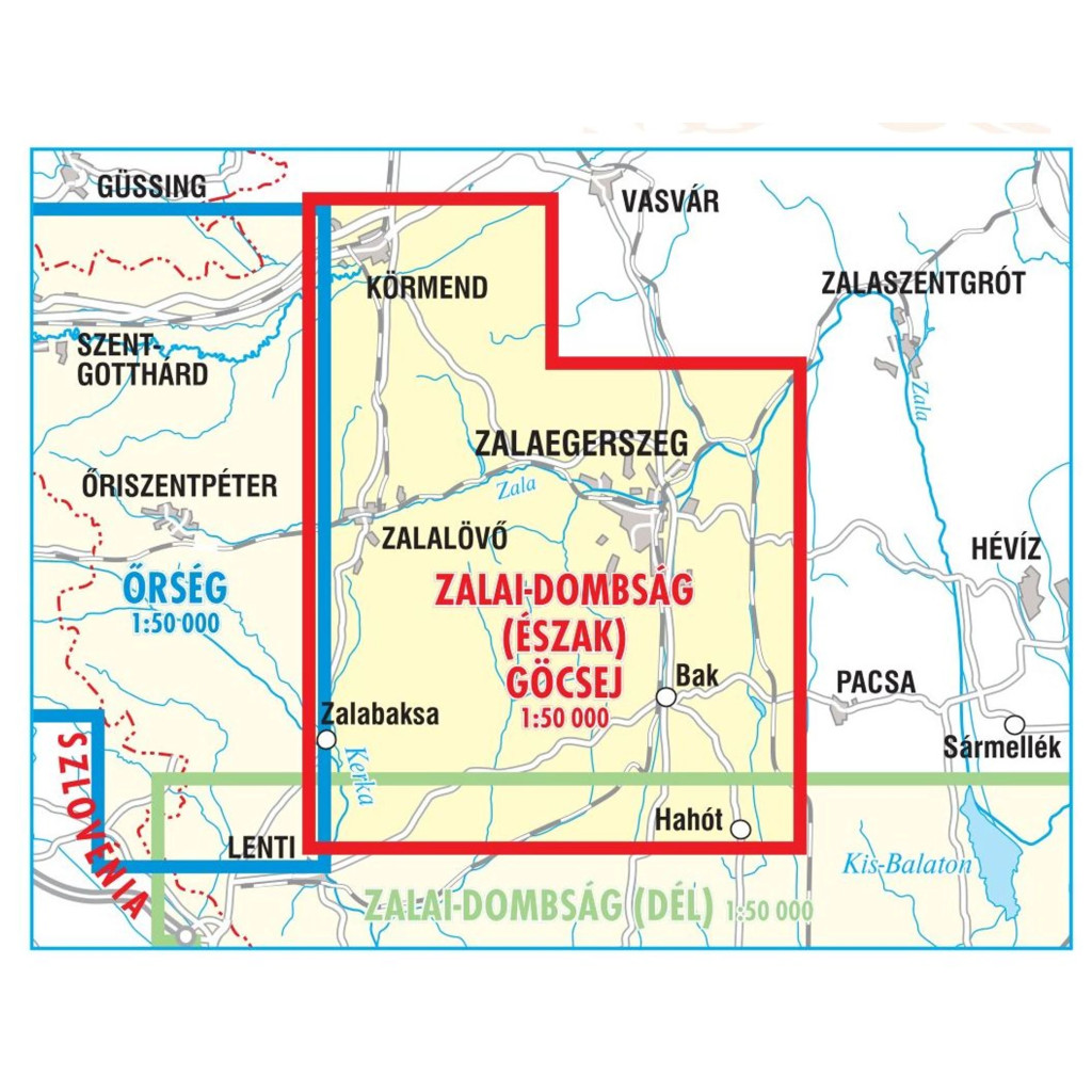 Zalai-dombság (északi rész), Göcsej és Vasi-hegyhát turista és kerékpáros térkép. Zalaegerszeg környékével kiegészítve, 1: 50 000 méretarányban.